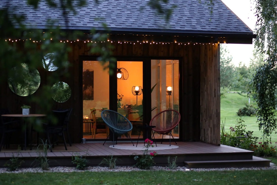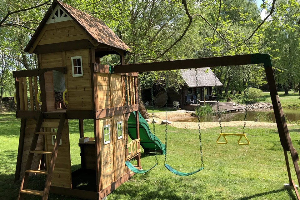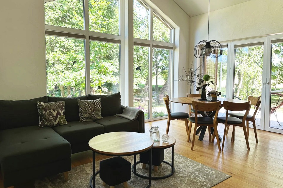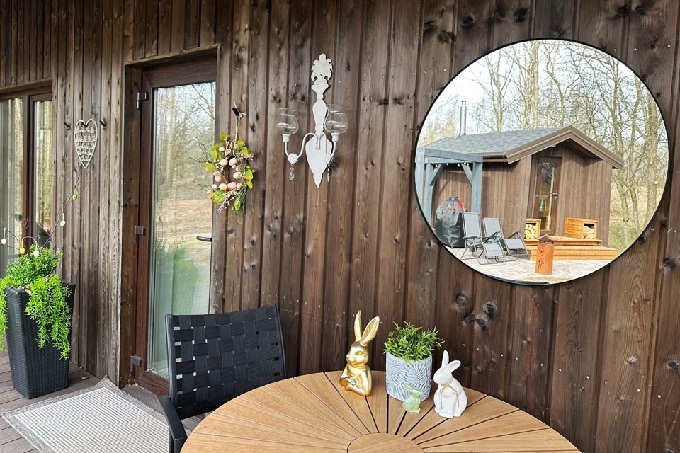 | Die Ferienhausanlage liegt in einer ruhigen, hügeligen Landschaft, umgeben von Wiesen, Feldern und kleinen Wäldern. Hier kann man gut entspannen und die Natur genießen. In der Umgebung lassen sich viele Vögel beobachten, darunter auch Kraniche, die im Frühling und Herbst über die Landschaft ziehen. Spazier- und Radwege laden dazu ein, die Gegend zu erkunden und die frische Luft zu genießen. Am Teich der Anlage gibt es gute Möglichkeiten zum Angeln. Wer möchte, kann hier in aller Ruhe die Rute auswerfen und den Tag am Wasser verbringen. Die Ferienhäuser sind gemütlich eingerichtet und bieten alles, was man für einen erholsamen Aufenthalt braucht. Ob für ein Wochenende oder einen längeren Urlaub – hier findet man Ruhe und Natur pur. Ein besonderer Ort für alle die Ruhe und Enstpannung suchen. Das Ferienhaus ist sehr modern aber gemütlich eingerichtet. |